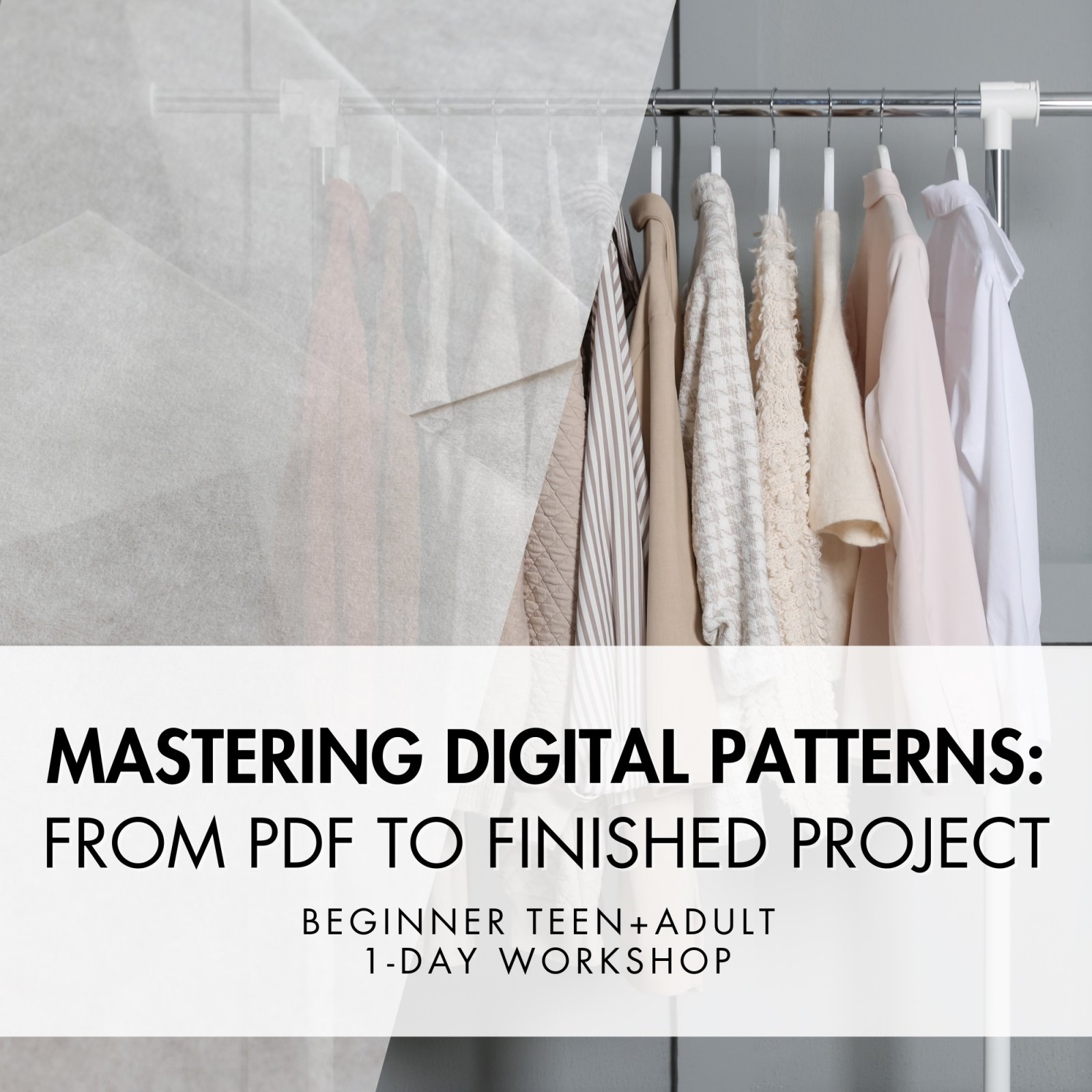 This workshop takes the mystery out of printing and assembling PDF sewing patterns. By the end of the day, you will leave with a fully assembled pattern ready for fabric and the confidence to navigate any digital pattern shop.