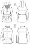 Lightweight and unlined, it features a two-piece cuffed sleeve, optional drawstring waist, gusseted flap pocket and a zipper placket with snap buttons. View A will keep you warm and dry with a roomy three-piece hood, while View B features a classic stand-up collar.